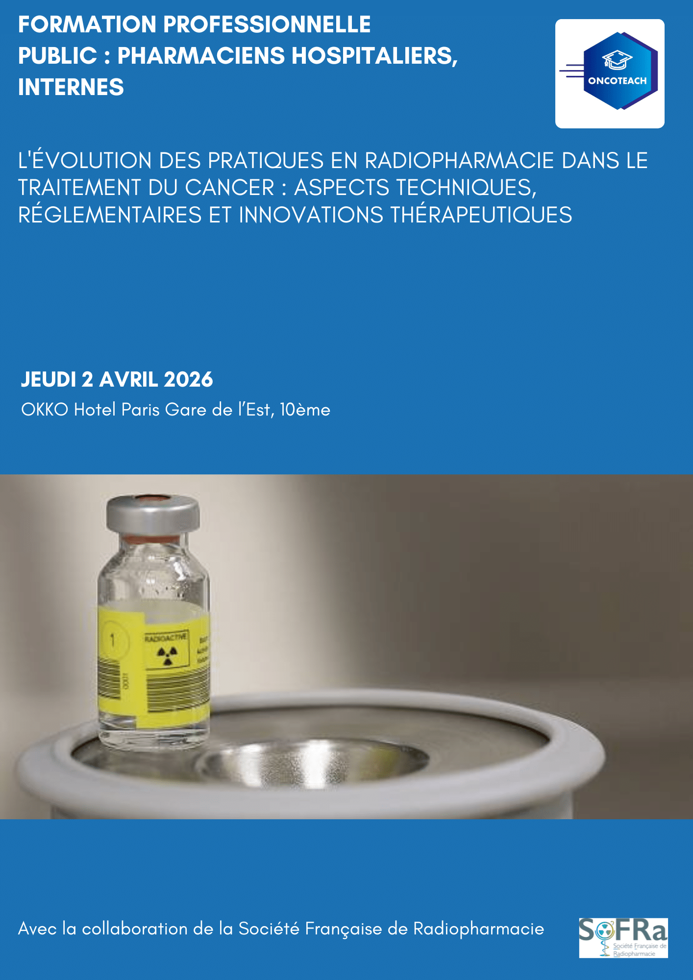 Cette journée doit permettre aux radiopharmaciens et pharmaciens hospitaliers impliqués en cancérologie d’approfondir et actualiser leurs connaissances théoriques et pratiques sur la Radiopharmacie, en lien notamment avec les évolutions réglementaires et scientifiques récentes.